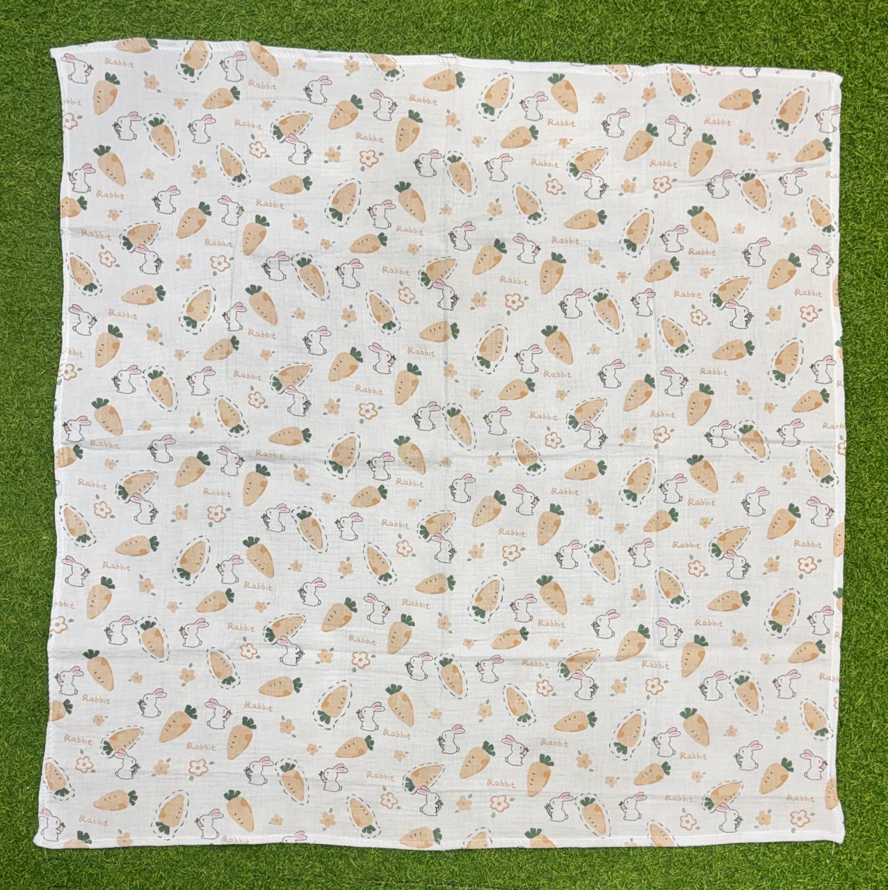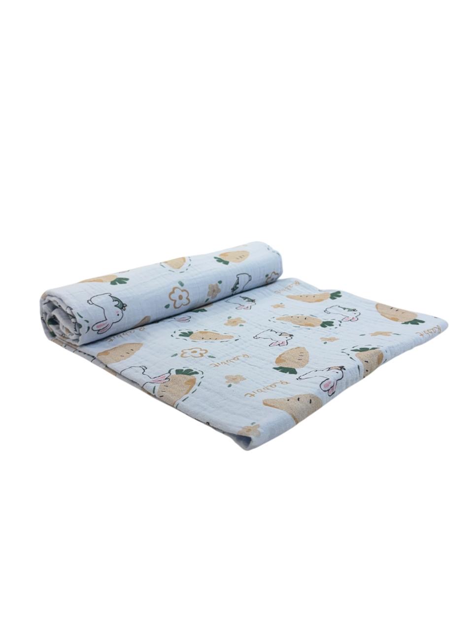 Wrap your little one in softness and comfort with this adorable Baby Muslin Swaddle. Designed to provide a warm and secure feeling like a mother’s hug, this swaddle features a soothing light blue base with cute bunny and carrot prints, creating a calm and playful vibe for your newborn. 🐰🥕